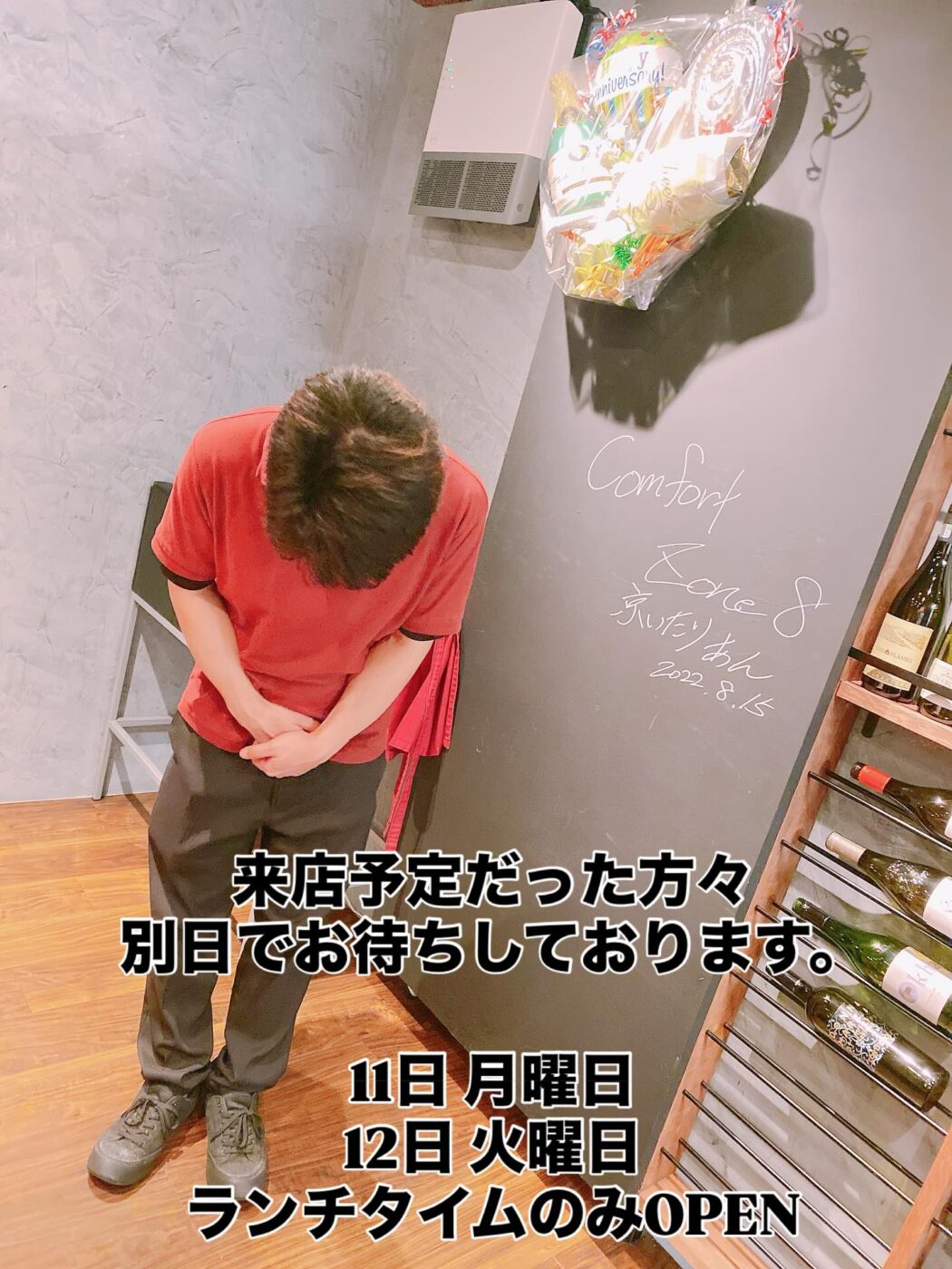 京いたりあんです。 10日 日曜日 ランチタイム 貸切営…